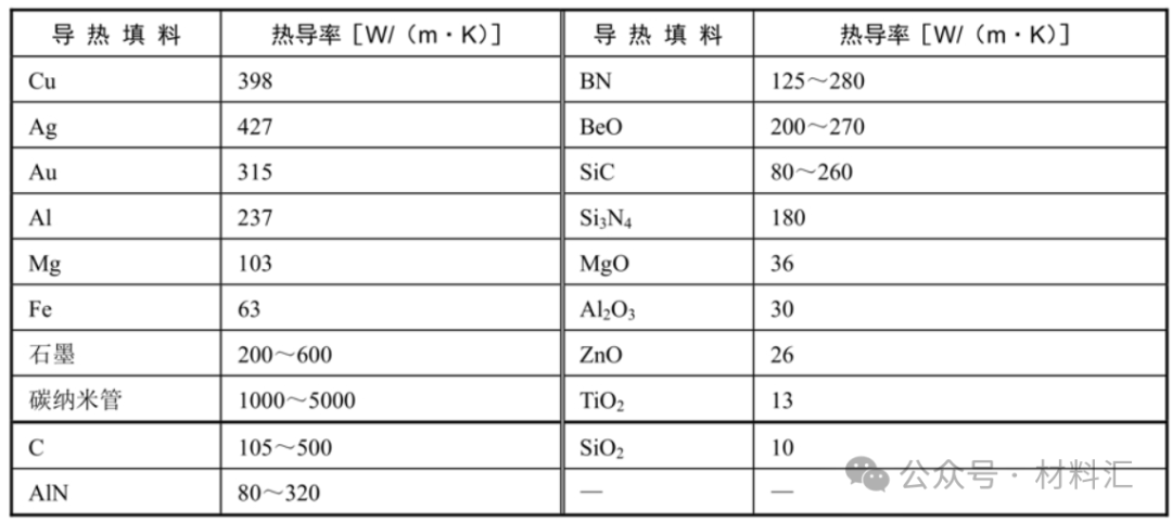 热界面材料其实可以看作高分子聚合物材料和导热填料的复合产物。高分子聚合物材料具有低密度、电绝缘和良好加工性等特点,制得的导热聚合物能很好地结合这些优异物理性能。填充型导热聚合物材料是以高分子聚合物材料为基体,填充各种微米、纳米尺寸导热填料的热界面材料。填充型导热聚合物材料成本较低,制造容易实现,将占据主要的市场地位,成为产业发展的主要方向。目前国内外导热聚合物材料的研究主要集中在填充型导热聚合物材料方向,表3列出了常见导热填料的热导率。导热填料主要可以分为金属填料、陶瓷填料、碳类填料、混合填料(或称杂化填料)、定向排列填料等。