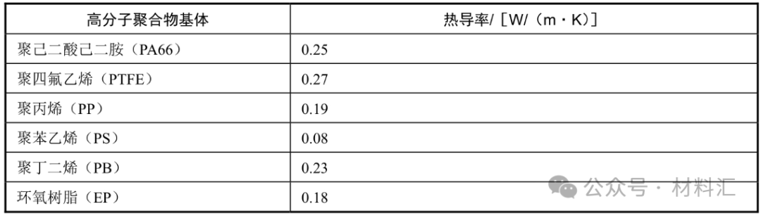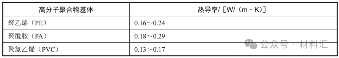 热界面材料是一种具有高导热性的高分子聚合物材料。近年来,高分子聚合物材料的应用领域不断扩大,这是因为高分子聚合物材料结构层次丰富,可以通过控制和改性结构单元,获得各种不同的材料特性,且易于加工。但是一般的高分子聚合物材料的热导率比较低(<0.5W/(m·K)),属于热的不良导体。表2列出了常见高分子聚合物基体的热导率。制造高导热性且综合性能好的聚合物热界面材料受到越来越多的关注,成为散热领域的研究重点。