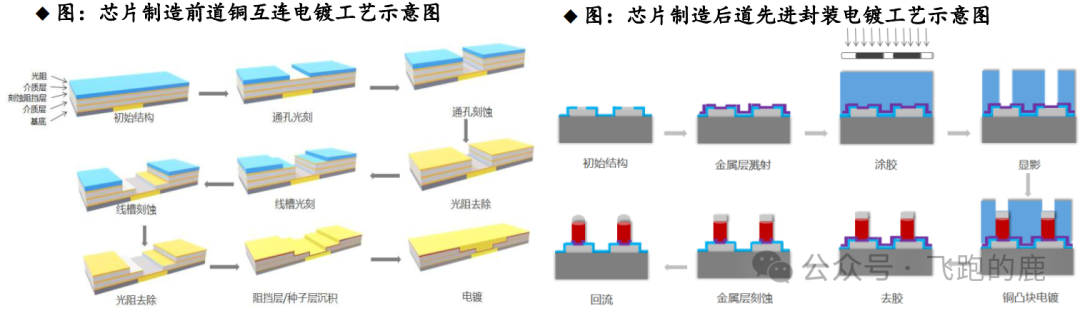 传统封装中电镀机主要给封装特定部位镀金属,先进封装的凸块、RDL、TSV 等需镀铜,设备受益;前道需在晶圆镀致密无缺陷的铜,后道硅通孔等工艺也用电镀镀铜、镍等。