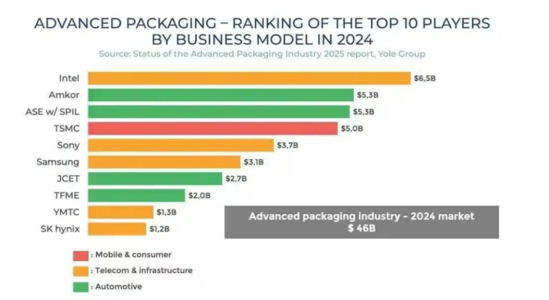在技术进步、产能扩张的同时,先进封装的市场格局也在变化。
